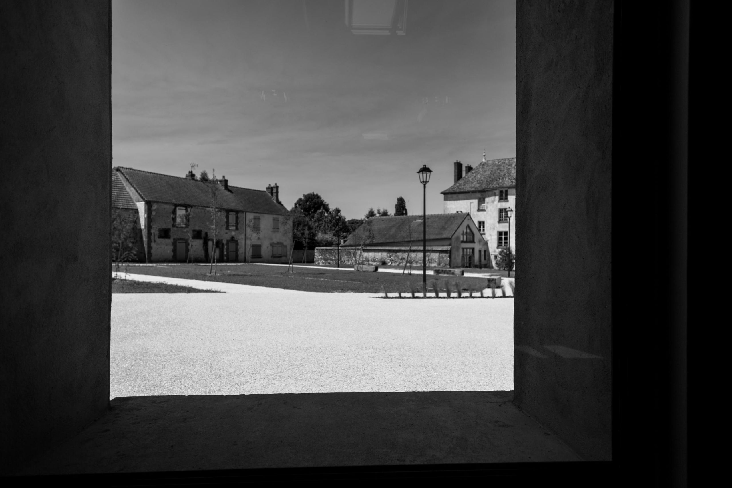 La place créée entre la longère et la Mairie s’organise comme une liaison et crée une continuité entre le chemin venant de la mairie, le chemin des écoliers, la rue de Bréval et l‘angle sud-est du site.